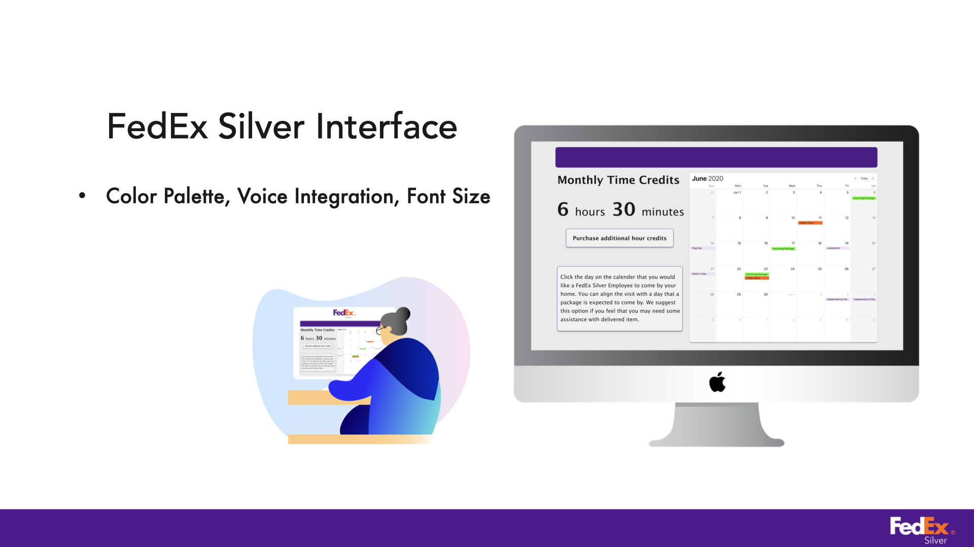 Power Logistics - Companion’s UI is built off FedEx’s existing logistics platform. Features like Preferential Persona help in storing not just companion’s needs, but also desires. Silver’s UI is built keeping accessibility at its core, with features like voice integration, warm color palette and larger font size to help make the digital interaction process smoother for Silvers.